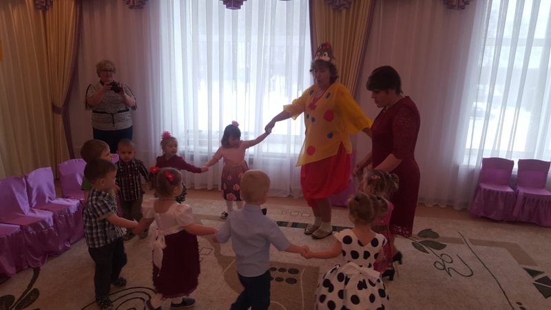 Самые маленькие воспитанники нашего детского сада из группы «Гномики» долго готовились к празднику, чтобы порадовать своих мам и бабушек. И это им удалось! Дети весело исполнили танец «Цыплят» вместе с «Курочкой», которая пришла всех поздравить.