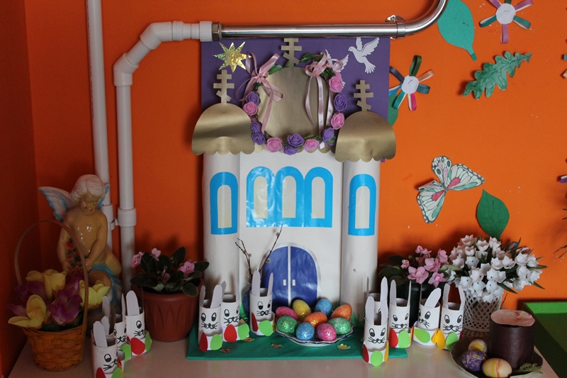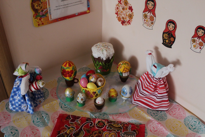 К празднику Великой Пасхи в нашем детском саду в каждой группе были организованы тематические уголки. Уголки отображали символы и атрибуты православного праздника.