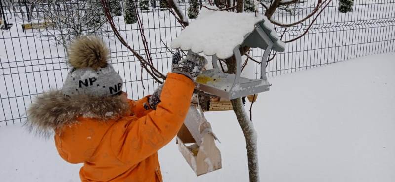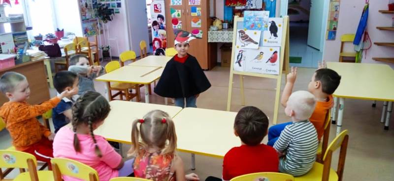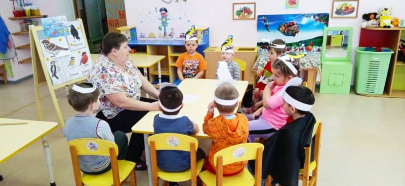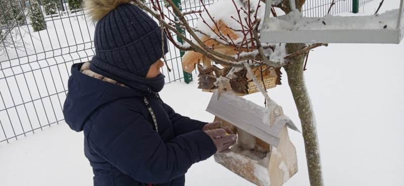 В предварительной работе наблюдали снегиря и других птиц, как они прилетают к кормушкам, в которые дети сами насыпали корм.