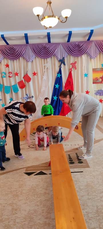 21 февраля в ясельной группе "Гномики" прошло развлекательное мероприятие, посвященное Дню Защитника Отечества. В нарядно украшенном зале царила праздничная атмосфера. Наши самые маленькие воспитанники играли в подвижные игры, проходили полосу препятствий. Было нелегко, но они справились! Предлагаем вам посмотреть, как это было.