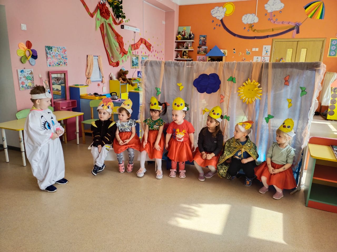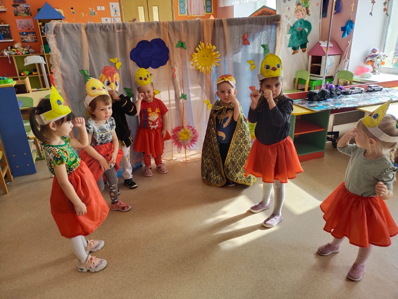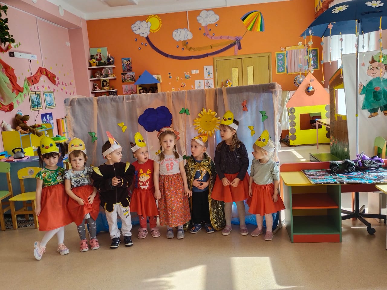 В средней группе «Радуга» педагог Оськина Н.В. вместе с детьми подготовила театрализованную постановку «Как цыплята маму искали».