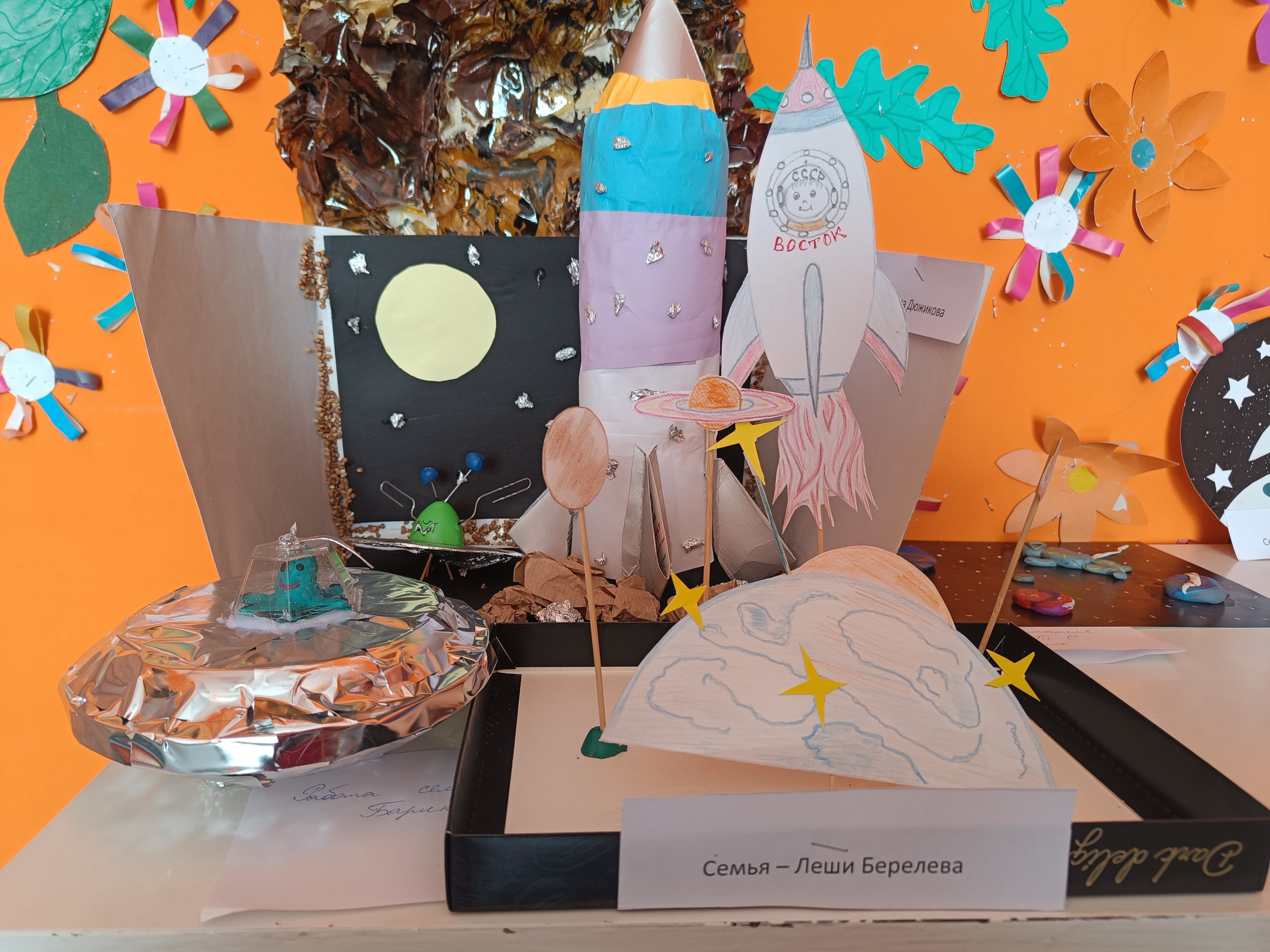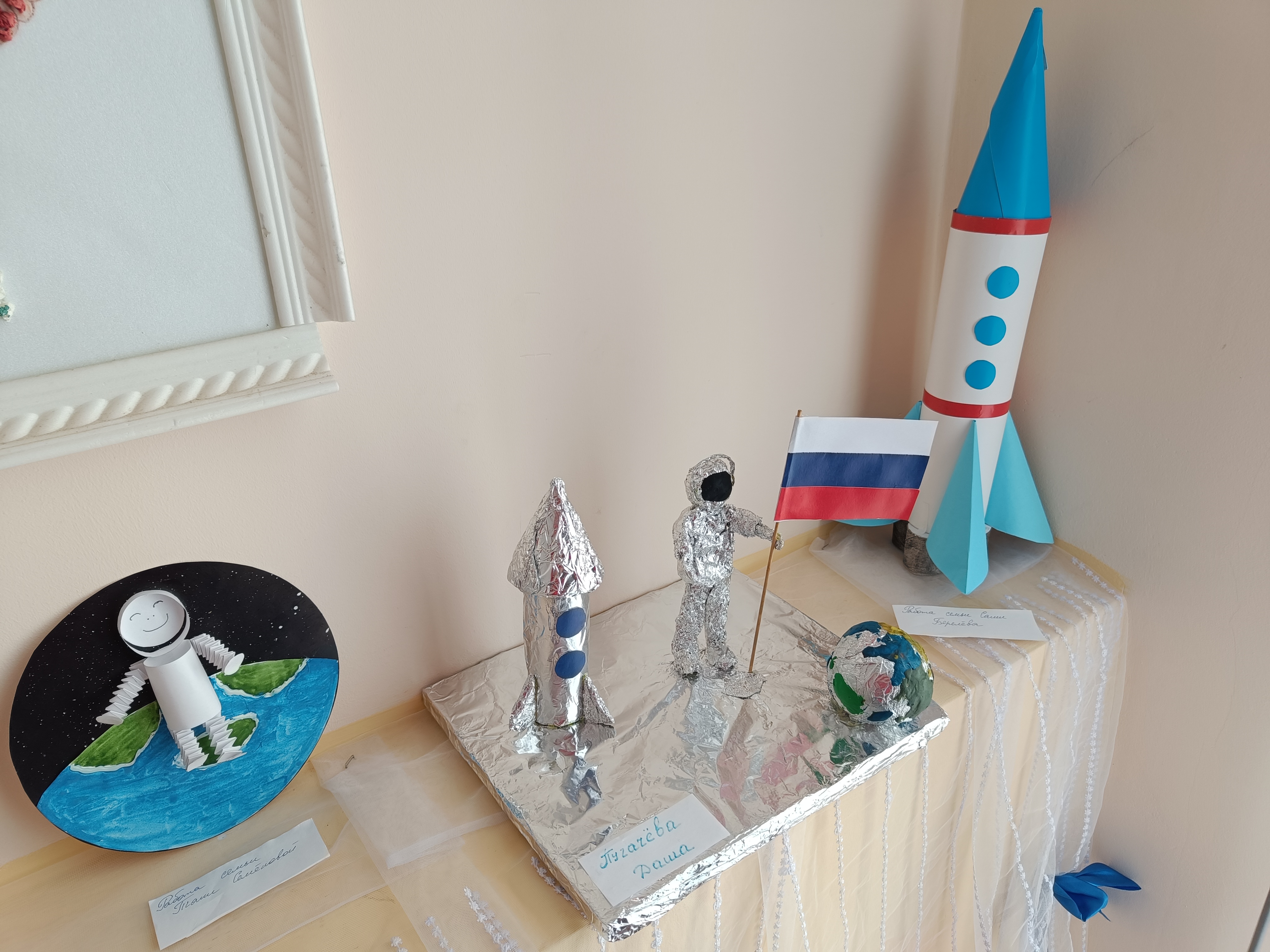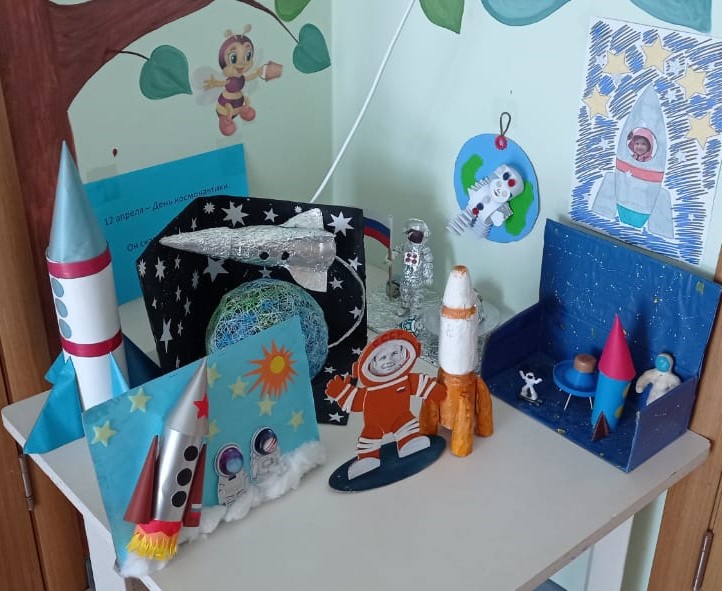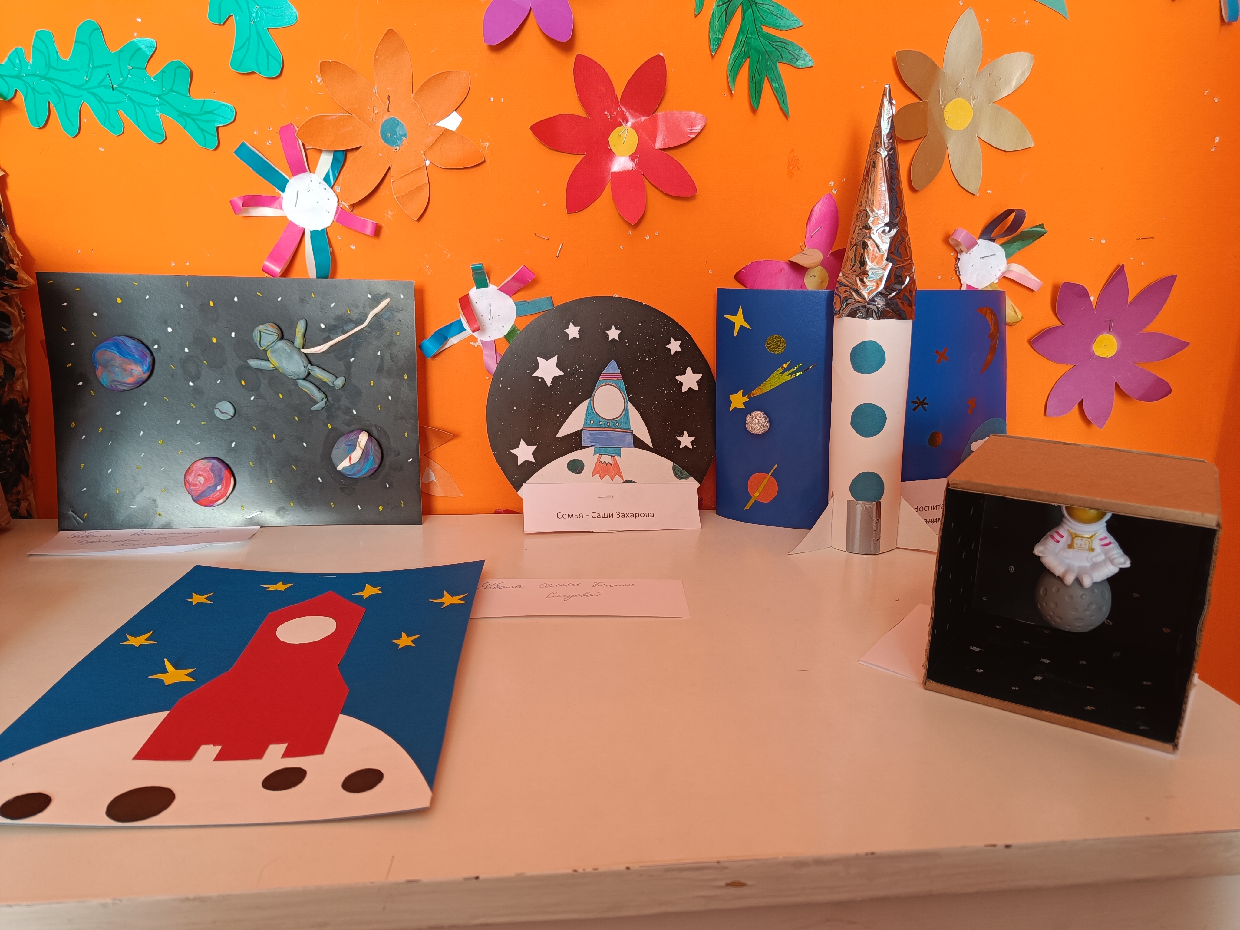 Ко Дню космонавтики в нашем детском саду была организована тематическая выставка на тему: «Космос». Дети совместно с родителями изготовили поделки из разного материала. Посмотрите, как здорово получилось!